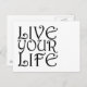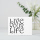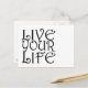 Black and white styling is simple and elegant. Tell the recipient of the postard that you care about them, by encouraging them to "live your life".