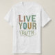 The text "Live Your Truth" is written in a bold, distressed font with multiple colors, evoking a sense of empowerment and individuality. The design is simple yet impactful, making it a versatile choice for any outfit.