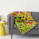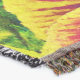 A quality printed throw has its advantages. This is a much finer weave throw than its loopier cousins, and though lighter, it is worth the investment for custom room accessorizing. The back is much prettier than the typical brown, and the fringe on the long sides very vivid, the selvage nicely done. Before photographing, I washed the throw in cold water, delicate, with a thicker woven throw the same size. On tumble dry low, this throw was dry in half the time as the other. This is a very practical quality if you use throws for furniture covers or to wrap up in frequently. The sleekness of the fabric makes it a great layer for accenting or protecting without the feeling of sitting on too much stuff. Perfect for napping or when you feel a light chill coming on. The color printing is beautiful and on this fabric, matched the design and color of my Photoshop image. This is an advantage for blending room fabrics and colors. The fringe on the short sides prints the colors from the design image and therefore varies from the side fringe. I streaked a white fractal line through the plaid pattern to give the illusion of weaving. This printed as crisp as an illusory thread, and put some white in the short side fringe, showing another advantage of print vs loomed- for artistic purposes, line lines, detail, and color integrity can be planned and preserved. My loomed throws have color limitations and more of a needlepoint texture. Print throws reproduce an exact image. The throw felt a little stiff straight out of the package, but this went away in the first delicate wash. Of course I searched the wash water for ink or bleeding and there was none.