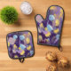 Lively, Purple and Yellow, Abstract Art Oven Mitt & Pot Holder Set