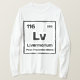 This design features a bordered square mimicking an element tile, with the atomic number "116" at the top left, atomic mass "293" at the top right, the symbol "Lv," the full name "Livermorium," and the classification "Post-Transition Metal" underneath. It’s fun for scientists and students because it playfully celebrates the superheavy, synthetic element Livermorium, turning obscure nuclear-physics trivia into wearable geek chic. It also signals insider pride in the quest to expand the periodic table.