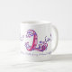 Hand drawn letter L name and meaning mug. Pretty heart and flower capital L doodled typographic design featuring hearts and flowers and the words Lívia Worthy of envy. A shrewd beauty full of vitality in pink and purple. © Unique art and design by Sarah Trett. www.sarahtrett.com for www.mylittleeden.com on zazzle