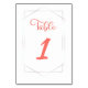 Living Coral Geometric Script Wedding Table Number