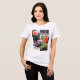 The design on this T-Shirt is a group of original photographs of orange flowers, lavender flowers and tropical leaves. The colors range from soft pastels to bright, with a variety of greens in shadow and bright light. On the t-shirt it says "LIVING GREEN with orange and lavender" in one corner of the design.