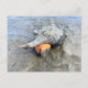 Florida wild sea snail photography postcard. A living horse conch seashell, with orange snail inside, is on the mud left at low tide. A lucky find while boating the saltwater river, this large mollusk is the state shell of Florida. This shell is not very pretty, with barnacles on it, but it is typical of what we see in the wild. Add a message to the back of the card, which has a beach scene background.