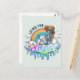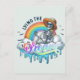 A whimsical postcard featuring a skeleton lounging on fluffy clouds with a colorful rainbow backdrop and bold "Living the Dream" lettering. A funny and ironic gift for those who love dark humor, surreal art, and playful sarcasm. Great for dreamers, humor lovers, and anyone who enjoys a lighthearted twist on life’s journey.