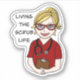 Funny pun with Caucasian blonde nurse, doctor, medical assistant, caregiver, CNA in glasses cartoon female in burgundy scrubs. Living the scrub life.