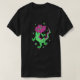 My 11 yo wore adult XL (5’7” 165#). The 8yo is small framed. She wore adult small and tied it in the back. Grandma wore adult large with long sleeve shirt underneath. Tall girl adult medium. Dark haired male adult large. Good quality dark Heather gray, Gildan brand shirt. -it was next up from basic choice and cost about $20 per shirt. Not too thick or thin. Washed and dried well, no major shrinkage. Not see-through. Can wear a bra under it fine. Screen print is just as shown and well done, front and back.
