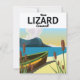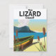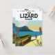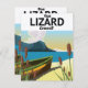 Lizard Cornwall seaside travel poster with a fishing boat on the beach.