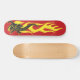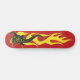 This black and yellow lizard is set on yellow flames with a red background. This fun reptile makes a colorful skateboard.
