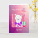 Fun, super cute personalized greeting card for girls who think llamas are llamazing! in purple and pink tones.