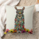 Originally drawn in ink, illustrated llama with geo patterning and gerbera daisies