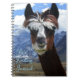 Fun llama image knitting or fiber journal. A fun, rust brown llama image looks out from the front of this spiral-bound notebook. A photo of the Andes mountain range is the background image. Personalize with a name and use as a knitting journal, record of yarn purchases, or anything.