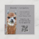 Square, llama business cards for a knitting teacher, or fiber business. Simple printed black text is used for a name at the top, services offered and a QR code template, with text to entice potential students to learn more. Shown on gray paper, with many others to choose from.