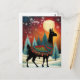 Elegant illustration Christmas holiday design featuring a llama on a pine tree and a full moon background.