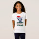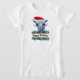 This is an adorable Christmas T-shirt featuring the face of an adorable llama wearing a Santa hat with a Christmas border and text. The text on the T-shirt can be customized with your own or left as is.
