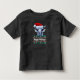 This is an adorable Christmas toddler's T-shirt featuring the face of an adorable llama wearing a Santa hat with a Christmas border and text. The text on the T-shirt can be customized with your own or left as is.
