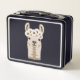 This is a standard metal lunchbox that appears to work just fine. We designed this box ourselves with an uploaded photo and custom text on the front and back. It looks absolutely beautiful except the front of the lunchbox is not centered like it shows in the photo. The print borders don't align with the inset flat part of the box where the preview photo online showed it perfectly centered in there. The back looks nice and centered though.