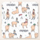 Llamas In Hats & Scarves Skiing Pattern Square Paper Coaster