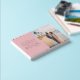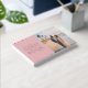 This wedding guest book features a soft, pastel pink cover with elegant typography that exudes sophistication and charm. The design includes a beautiful beach scene photo area, perfect for capturing your special moment together. The overall aesthetic is romantic and serene, ideal for couples looking to create a memorable keepsake from their big day. With its clean layout and inviting color palette, this guest book adds a touch of elegance to any wedding celebration, offering guests a meaningful way to leave their well-wishes.