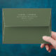 This elegant wedding invitation features a sophisticated and timeless design, perfect for a classic celebration. The text is presented in an understated yet refined typography style, complementing the minimalist aesthetic of the dark green envelope. The color palette exudes sophistication with its rich, muted tones, creating a mood that is both formal and inviting. Ideal for couples seeking a traditional and polished look, this design allows for personalization to reflect your special day while maintaining an air of elegance and grace.