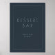 This elegant tabletop sign features a minimalist design with clean, modern typography that reads "DESSERT BAR" and invites guests to indulge with the phrase "PLEASE TAKE A TREAT!" The color palette is sophisticated, featuring a deep navy background paired with crisp white text. Perfect for adding a touch of understated elegance to your wedding reception, this sign creates an inviting atmosphere while maintaining a refined aesthetic. Its simple yet stylish presentation ensures it complements any decor theme seamlessly.