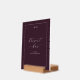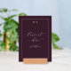 This elegant tabletop sign features a sophisticated maroon background with an inviting script that reads "dessert bar" and the phrase "PLEASE HELP YOURSELF," perfect for adding a touch of class to your wedding reception. The design exudes a refined and timeless mood, ideal for creating a warm and welcoming atmosphere at any special event. With its clean lines and minimalist style, it seamlessly complements a variety of decor themes while encouraging guests to indulge in sweet treats.