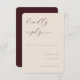 This elegant wedding RSVP card features a soft, minimalist design with a delicate script typography that adds a touch of sophistication. The light beige background creates a warm and inviting atmosphere, perfect for capturing the joyous essence of your special day. With its simple yet refined aesthetic, this card is ideal for couples who prefer an understated elegance in their wedding stationery. It offers customizable text areas to personalize your message while maintaining a cohesive and stylish look throughout.