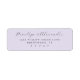 This elegant return address label design features a sophisticated and timeless style, perfect for wedding stationery. The typography is refined with an artistic flourish, adding a touch of romance and formality to the overall look. Set against a soft lavender background, it exudes a gentle and classic mood, ideal for creating cohesive and memorable wedding invitations or thank-you notes. Its clean lines and subtle color palette make it versatile for various occasions, ensuring your correspondence stands out with grace and charm.