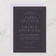 This elegant wedding invitation features a sophisticated and timeless design with clean, modern typography that exudes refinement. The monochromatic color palette of dark gray on white creates an understated yet luxurious feel, perfect for a classic celebration. The layout is simple and balanced, focusing attention on the essential details while maintaining a sense of grace and formality. Ideal for couples seeking to convey elegance and tradition in their special day, this invitation sets a tone of sophistication and poise.