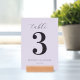 This elegant table card design features a sophisticated and minimalist style, perfect for a wedding setting. The large, bold number "3" takes center stage with an understated yet stylish font, complemented by delicate cursive script above it. Set against a soft lavender background, the color palette exudes a gentle and romantic mood. Ideal for adding a touch of class to your reception decor, this design seamlessly blends modern simplicity with timeless charm, ensuring a cohesive and refined look throughout your special day.