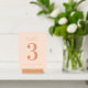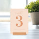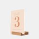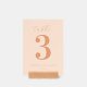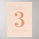 This elegant table card design features a soft, blush-pink background with an understated yet sophisticated script font. The large, ornate number "3" takes center stage, adding a touch of classic charm to the overall look. Perfect for a wedding reception, this minimalist style exudes warmth and grace, complementing any floral or rustic decor. Its simple yet refined aesthetic ensures it blends seamlessly into your special day's ambiance while providing essential seating information in a tasteful manner.