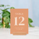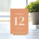 This elegant table card design features a soft, peachy background with clean and modern typography that exudes sophistication. The large numerals draw attention while the smaller text adds a personal touch, making it perfect for a wedding setting. The minimalist style is complemented by its simple yet stylish font, creating an inviting and warm atmosphere. Ideal for adding a refined finishing touch to your special day, this design seamlessly blends functionality with aesthetic charm, ensuring a memorable experience for guests.