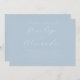 This elegant wedding invitation features a soft, pastel blue background with an understated yet sophisticated design. The typography is graceful and flowing, adding to the romantic and refined atmosphere of the piece. With its minimalist approach and clean layout, it exudes a timeless charm perfect for a classic celebration. Ideal for couples looking to convey elegance and simplicity in their special moment, this invitation allows for personalization while maintaining a cohesive and polished look.