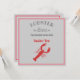 Lobster bake invitation with a red graphic lobster( from Zazzle fonts).Invitation template by Alma Wad. Customize it with the details of your own lobster party .