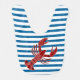 Bright blue and white horizontal stripe bib with a lobster.
