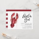 Watercolor lobster boil invitation. Modern brush script graphic "Lobster Boil" with watercolor red lobster and coordinating red and white stripe pattern backing.