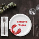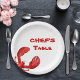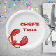 For a summer, fall or a crawfish boil party. A white background. Decorated with a large red lobster. Text: Chef's Table