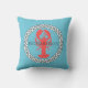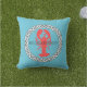 Lovely lobster design is perfect for your lobster or seafood themed beach house or patio! Design features a red lobster inside of a circle made of a braided ropes border in black and white. The background is a solid ocean blue. Across the lobster is a place to personalize with your family name in black font.