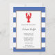 A red lobster on a blue stripe border. Give all of your guests a bright and friendly reminder about your upcoming seafood dinner with this vibrant lobster invitation.