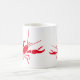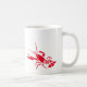 Coffee mug is shown in the classic white style with a cute red lobsters print.