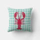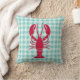Fun throw pillow that goes with all sorts of coastal and summer decor themes! Design features red lobster silhouette on blue gingham background