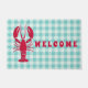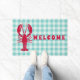 Fun welcome mat that goes with all sorts of coastal and summer decor themes! Design features red lobster silhouette on blue gingham background