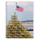 Lobster pot Christmas tree seascape in Plymouth, Massachusetts with the American flag designs this notebook.
