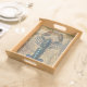This is a well made, sturdy wooden tray with a flawless black finish and lovely map on the tray surface. It is both vintage & modern at the same time. Looks exactly like the photo; does not disappoint. So nice to find something of quality individually made and not the mass-produced 'shabby chic' merchandise seen in stores. I am so pleased to be able to give this to my college-age niece for her birthday. This can be used as a tray to hold jewelry or toiletries, or hung on the wall as art. The map surface is sealed (it is slightly shiny) so would be moisture resistant. It is well worth the asking price but I was able to apply a sale code as well. Very happy with my purchase. Map is crisp & clear and sealed with a water-resitant finish.