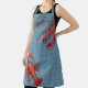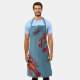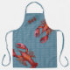 Long kitchen apron with lobsters design for dad or any man. Colonial blue color with all over crabs and lobsters pattern. Two big, red lobsters crawl up from the bottom and in from the top side. A perfect addition to a seafood lover's kitchen. Angled text over a blue brushstroke is "Dad", but can be changed to "Mom" or a personal name. Shown on the longest apron, with a shorter version available.