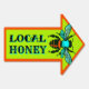 Advertise local honey for sale with this brightly colored, arrow-shaped sign. A big bee and custom text decorates both sides of this 18 x 24 inch, double-sided farm sign. Lime green color with bright orange border. A single blue and orange bee helps point the way to local honey at the farmer's market or farm stand, or to the beekeeper. The black text has a bright aqua blue shadow and is in uppercase lettering. Each line can be changed to any wording that fits the space. Please contact me for design help if needed. Read more about the sign in the product description. Buy with or without a stand for the ground.