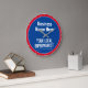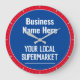 Wall Clock for a Village Shop, Local Supermarket, Convenience Store, or Local Grocers. Edit the design to change the wording to suit. Blue and Red colours.