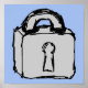 A lock symbol in black and gray on a blue color. This line illustration depicts a padlock with a keyhole, in light gray with a black outline. This lock icon was sketched with a graphics tablet.