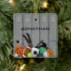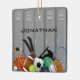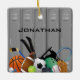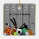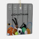 Locker Room Design Ornament, featuring various sports' equipment in front of a set of lockers. All text customizable, front and back!